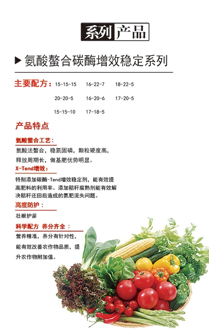 螯合肥料意味着一种或多种的营养元素由复杂和稳定的有机分子组合在一起,被称为整合剂。合成物和天然有机化合物都能形成有机金属混合物,氨基酸是生物有机整合剂中普遍应用于农业中的一种。