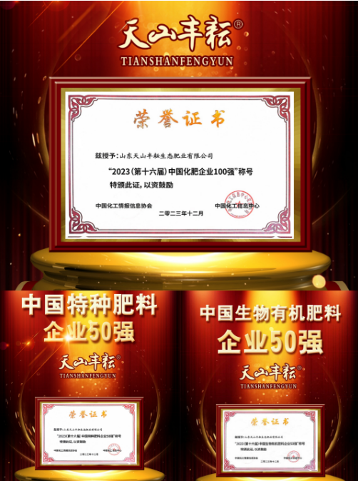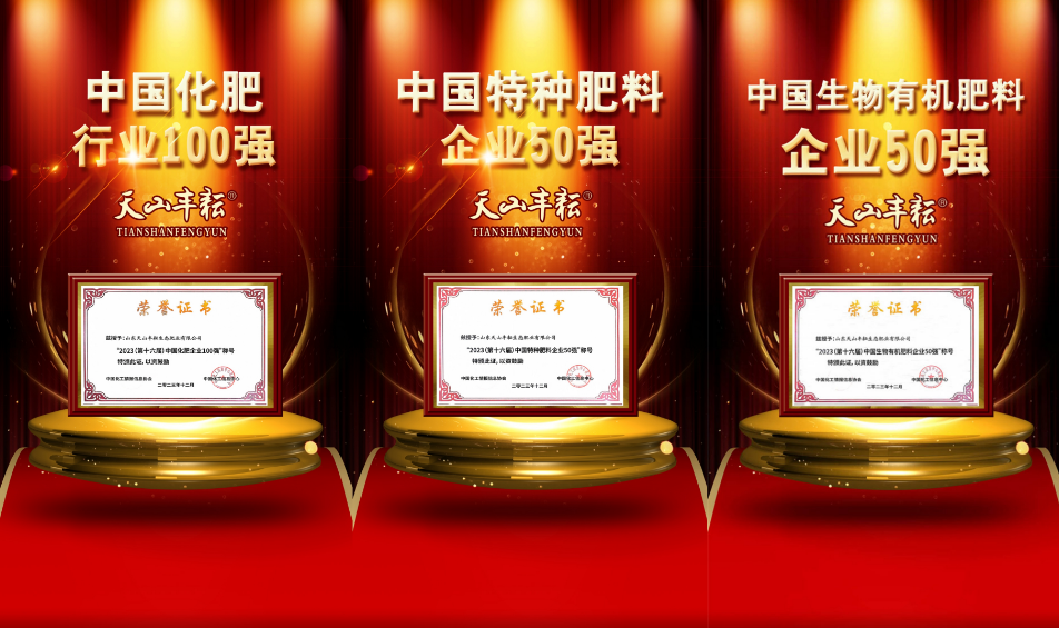 三大奖项的获得,进一步奠定了天山丰耘生态肥业在化肥行业的影响力和地位,展示了天山丰耘生态肥业迅猛发展、日益强大的综合实力。