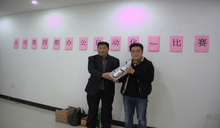 为了提高各部门工作人员岗位工作技能,丰富职工文化生活,达到共同学习、共同进步的目的。公司于2014年11月16日,组织开展天山公司第四届办公自动化Word打字比赛。经过激烈的角逐,Word打字比赛圆满结束!赛后总经理分别对获奖个人进行了颁奖,对未获奖人员进行了鼓励,对获奖优胜部门颁发了流动红旗。